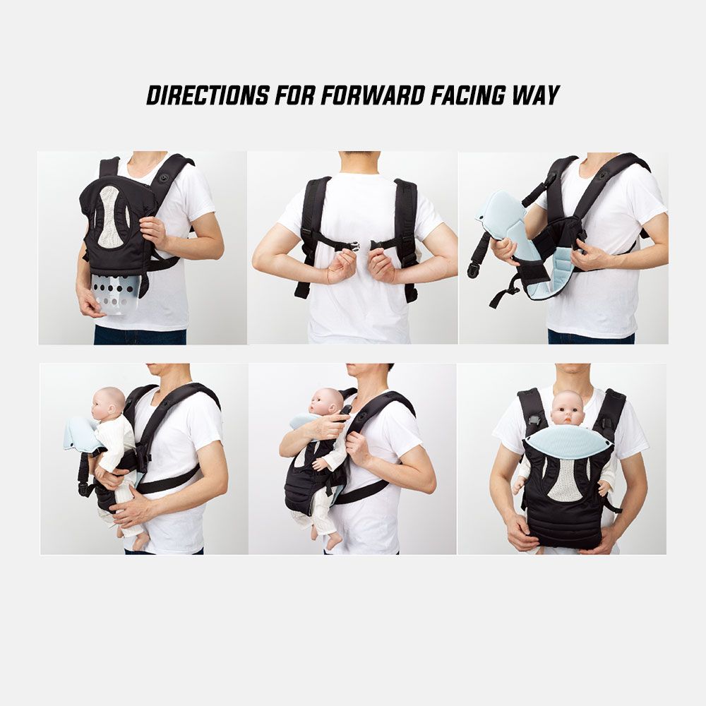 You can use it in different ways: lying down, facing forward, facing you, and as a backpack.
